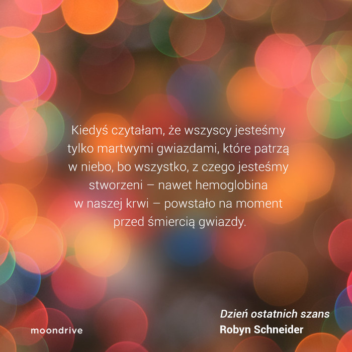 Nowa książka autorki bestsellera Początek wszystkiego to utrzymana w duchu powieści Johna Greena przejmująca, ale i dowcipna historia o życiu wbrew ciężkiej chorobie i o szansach, które mają swój termin ważności.